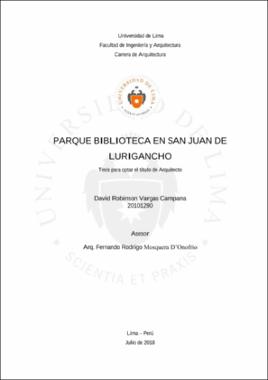 Vargas Campana, D. R. (2018). Parque biblioteca en San Juan de Lurigancho (tesis para optar el título de Arquitecto). Universidad de Lima. https://hdl.handle.net/20.500.12724/6967Editor