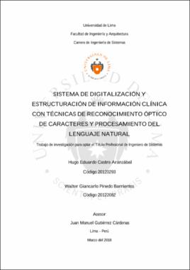 Castro Aranzábal, H. E. y Pinedo Barrientos, W. G. (2018). Sistema de digitalización y estructuración de información clínica con técnicas de reconocimiento óptico de caracteres y procesamiento del lenguaje natural [Trabajo de investigación para optar el Título Profesional de Ingeniero de Sistemas, Universidad de Lima]. Repositorio institucional de la Universidad de Lima. https://hdl.handle.net/20.500.12724/6972Editor