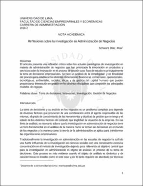 Schwarz Díaz, M. (2018). Reflexiones sobre la investigación en Administración de Negocios. Universidad de Lima, Facultad de Ciencias Empresariales y Económicas, Carrera de Administración.Editor