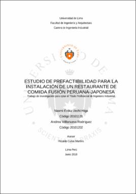 Uechi Higa, N. E. y Villanueva Rodriguez, A. (2018). Estudio de prefactibilidad para la instalación de un restaurante de comida fusión peruana-japonesa (trabajo de investigación para optar el título profesional de Ingeniero Industrial). Universidad de Lima.Editor