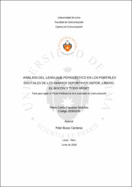 Cavassa Sánchez, P. C. (2018). Análisis del lenguaje periodístico en los portales digitales de los diarios deportivos Depor, Líbero, El Bocón y Todo Sport (tesis para optar el título profesional de Licenciado en Comunicación). Universidad de Lima)Editor