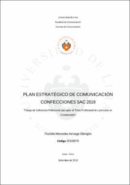 Arizaga Obregón, F. M. (2018). Plan estratégico de comunicación Confecciones SAC 2019 (trabajo de suficiencia profesional para optar el título profesional de Licenciado en Comunicación). Universidad de Lima.Editor
