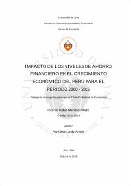Mendoza Matos, R. R. (2018). Impacto de los niveles de ahorro financiero en el crecimiento económico del Perú para el periodo 2000 - 2015 (Trabajo de investigación para optar el Título Profesional de Economista). Universidad de Lima.Editor