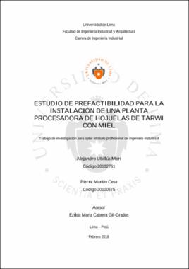 Ubillús Mori, A. y Martin Cesa, P. (2018). Estudio de prefactibilidad para la instalación de una planta procesadora de hojuelas de tarwi con miel (trabajo de investigación para optar el título profesional de Ingeniero Industrial). Universidad de Lima.Editor