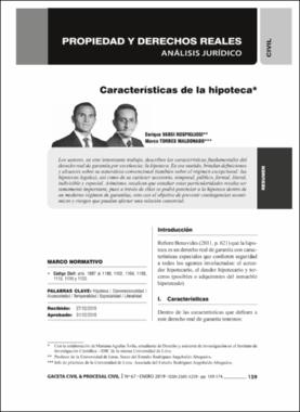 Varsi Rospigliosi, E. y Torres Maldonado, M. (2019). Características de la hipoteca. Gaceta Civil & Procesal Civil, (67), 159-174.Editor