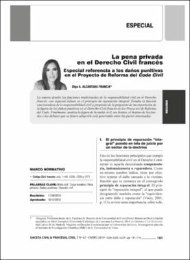 La pena privada en el Derecho Civil francés. Especial referencia a los daños punitivos en el Proyecto de Reforma del Code Civil