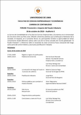 Universidad de Lima, Carrera de Contabilidad. (18 de octubre de 2018). Foro: Prevención e Impacto del Fraude Tributario [archivo de video]. Recuperado de https://youtu.be/b71tYkk2qEgEditor