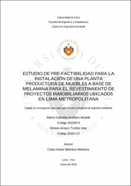 Estudio de pre-factibilidad para la instalación de una planta productora de muebles a base de melamina para el revestimiento de proyectos inmobiliarios ubicados en Lima Metropolitana