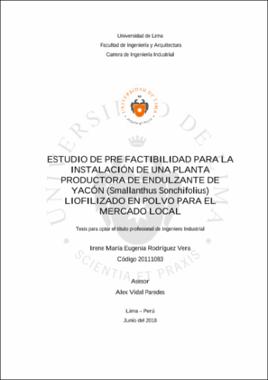 Estudio de pre factibilidad para la instalación de una planta productora de endulzante de yacón (Smallanthus Sonchifolius) liofilizado en polvo para el mercado local