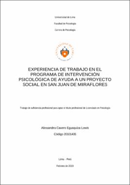 Cavero Egusquiza Lewis, A. (2019). Experiencia de trabajo en el programa de intervención psicológica de ayuda a un proyecto social en San Juan de Miraflores (trabajo de suficiencia profesional para optar el título profesional de Licenciado en Psicología). Universidad de Lima.Editor
