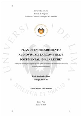 Santivañez Díaz, R. (2019). Plan de emprendimiento audiovisual: largometraje documental “Mala Leche” (Trabajo de investigación para optar el grado académico de Maestro en Dirección Estratégica de Contenidos). Universidad de Lima.Editor