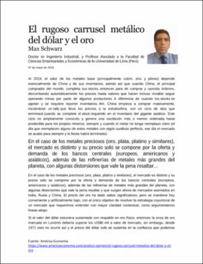 Schwarz, M. (2019). El rugoso carrusel metálico del dólar y el oro. América Economía. Recuperado de https://www.americaeconomia.com/analisis-opinion/el-rugoso-carrusel-metalico-del-dolar-y-el-oroEditor
