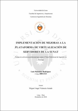 Palomino Rodríguez, L. (2018). Implementación de mejoras a la plataforma de virtualización de servidores de la SUNAT [Trabajo de suficiencia profesional para optar el Título Profesional de Ingeniero de Sistemas, Universidad de Lima]. Repositorio institucional de la Universidad de Lima. https://hdl.handle.net/20.500.12724/8620Editor