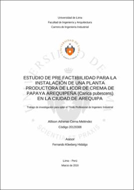 that has as main characteristics the flavor of the fruit as well as a slight alcoholic strength. El presente estudio preliminar tiene como finalidad evaluar la viabilidad de la implementación de una planta productora de licor de la papaya arequipeña con crema de