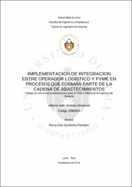 Jimenez Alvarado, A. I. (2018). Implementación de integración entre operador logístico y pyme en procesos que forman parte de la cadena de abastecimientos [Trabajo de suficiencia profesional para optar el Título Profesional de Ingeniero de Sistemas, Universidad de Lima]. Repositorio Institucional de la Universidad de Lima. https://hdl.handle.net/20.500.12724/8657Editor