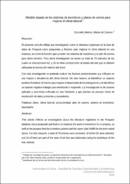 Gonzales Merino, M. C. (2019). Modelo basado en los sistemas de incentivos y planes de carrera para mejorar el clima laboral [trabajo de fin de curso]. Universidad de Lima, Facultad de Ciencias Empresariales y Económicas, Carrera de Administración. https://hdl.handle.net/20.500.12724/8745Editor