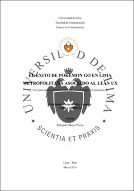 Mas Amorós, E. V. (2019). El éxito de Pokémon Go en Lima Metropolitano asociado al Lean UX (tesis para optar el título profesional de Licenciado en Comunicación). Universidad de Lima.Editor