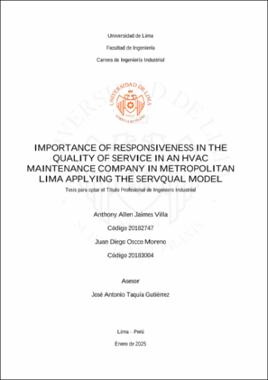 Importance of responsiveness in the quality of service in an hvac maintenance company in Metropolitan Lima applying the servqual model