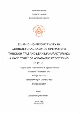 This study evaluates the application of Total Productive Maintenance (TPM) and Lean methodologies in the Peruvian agricultural sector, focusing on asparagus packing operations. To this end, it develops an innovative model ...