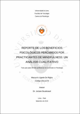 Ugarte de Riglos, M. (2018). Reporte de los beneficios psicológicos percibidos por practicantes de mindfulness: un análisis cualitativo (tesis para optar el título profesional de Licenciado en Psicología). Universidad de Lima.Editor