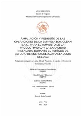 Ampliación y rediseño de las operaciones de la empresa Box Clean S.A.C., para el aumento de la productividad y la capacidad instalada, durante el período de estudio de enero del 2022 hasta junio del 2023