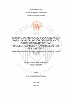 Torrejón Cueva, V. A. (2019). Estudio de mercado y localización para la instalación de una planta productora de bolsas biodegradables a partir de ácido poliláctico (trabajo de investigación para optar el el grado académico de bachiller en Ingeniería Industrial). Universidad de Lima.Editor