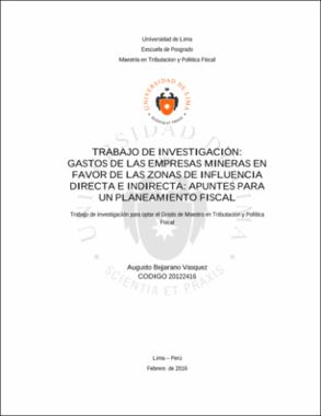 Gastos de las empresas mineras en favor de las zonas de influencia directa e indirecta : apuntes para un planeamiento fiscal