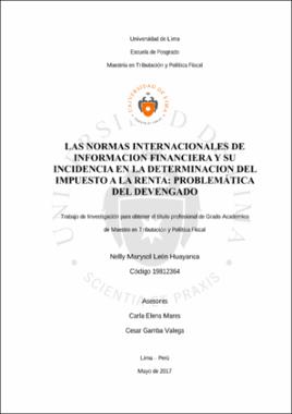 León Huayanca, N. M. (2017). Las Normas Internacionales de Información Financiera y su incidencia en la determinación del impuesto a la renta: problemática del devengado [Trabajo de investigación para obtener el título profesional de grado académico de Maestro en Tributación y Política Fiscal]. Repositorio Institucional de la Universidad de Lima. https://hdl.handle.net/20.500.12724/9521Publisher