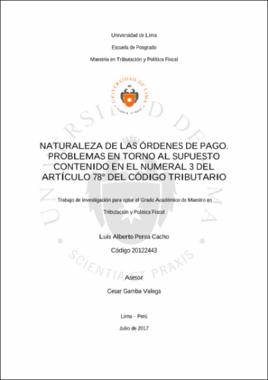 Perea Cacho, L.A. (2017). Naturaleza de las órdenes de pago. Problemas en torno al supuesto contenido en el numeral 3 del artículo 78° del Código Tributario [Trabajo de investigación para optar el grado académico de Maestro en Tributación y Política Fiscal]. Repositorio Institucional de la Universidad de Lima. https://hdl.handle.net/20.500.12724/9522Editor