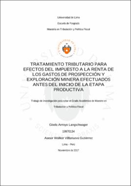 Arroyo Langschwager, G. (2017). Tratamiento tributario para efectos del impuesto a la renta de los gastos de prospección y exploración minera efectuados antes del inicio de la etapa productiva (trabajo de investigación para optar el grado académico de Maestro en Tributación y Política Fiscal). Universidad de Lima.Editor