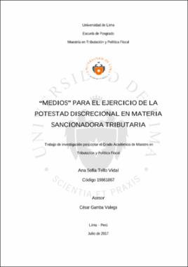 Tello Vidal, A. S. (2017). “Medios” para el ejercicio de la potestad discrecional en materia sancionadora tributaria (Trabajo de investigación para optar el grado académico de Maestro en Tributación y Política Fiscal). Universidad de Lima. https://hdl.handle.net/20.500.12724/9552Editor