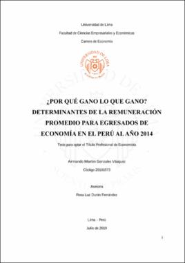 ¿Por qué gano lo que gano? determinantes de la remuneración promedio para egresados de economía en el Perú al año 2014