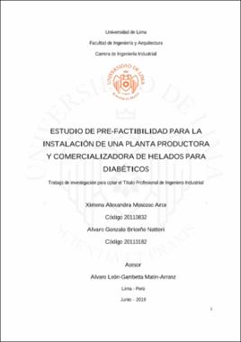 Moscoso Arce, X. A. y Briceño Natteri, A. G. (2019). Estudio de prefactibilidad para la instalación de una planta productora y comercializadora de helados para diabéticos (trabajo de investigación para optar el título profesional de Ingeniero Industrial). Universidad de Lima.Editor