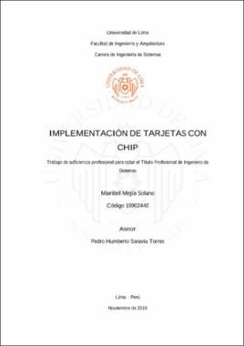 Mejía Solano, M. (2019). Implementación de tarjetas con chip [Trabajo de suficiencia profesional para optar el Título Profesional de Ingeniero de Sistemas, Universidad de Lima]. Repositorio institucional de la Universidad de Lima. https://hdl.handle.net/20.500.12724/9937Editor