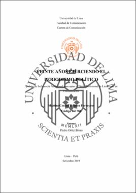 Rosales-Ferreyros, M. C. (2019). Veinte años ejerciendo el periodismo político (trabajo de suficiencia profesional para optar el título profesional de Licenciado en Comunicación). Universidad de Lima.Editor