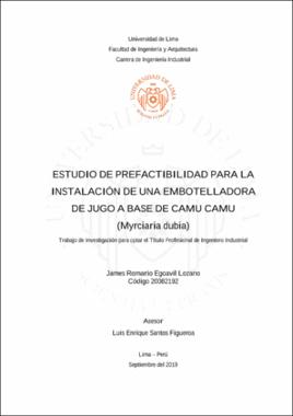 Egoavil Lozano, J. R. (2019). Estudio de prefactibilidad para la instalación de una embotelladora de jugo a base de Camu Camu (Myrciaria dubia) (trabajo de investigación para optar el título profesional de Ingeniero Industrial). Universidad de Lima.Editor