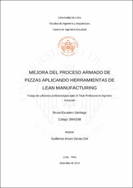 El presente trabajo tiene como objetivo mejorar el lead time para el proceso “armado de pizzas” en la empresa a través de LEAN Manufacturing, filosofía de manufactura compuesta por un conjunto de herramientas (5s, mapa de flujo de valor, manufactura celular, takt time entre otros) que permiten crear un sistema eficiente a través de la eliminación del desperdicio (actividades que no agregan valor, en japonés llamado MUDA) permitiendo un flujo continuo del producto o servicio.