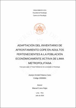 Polanco Cano, J. K. (2019). Adaptación del inventario de afrontamiento COPE en adultos pertenecientes a la población económicamente activa de Lima Metropolitana (tesis para optar el título profesional de Licenciado en Psicología). Universidad de Lima.Editor